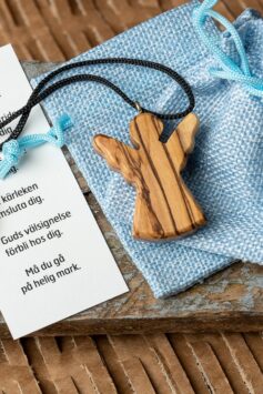 Halsband med ängel i olivträ, tillverkad i Betlehem.