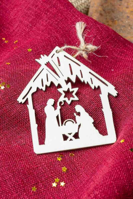 Mysig julkrubba att hänga i julgranen, ca 9 cm, hög. Kan hängas upp som den är eller dekoreras efter eget önskemål.