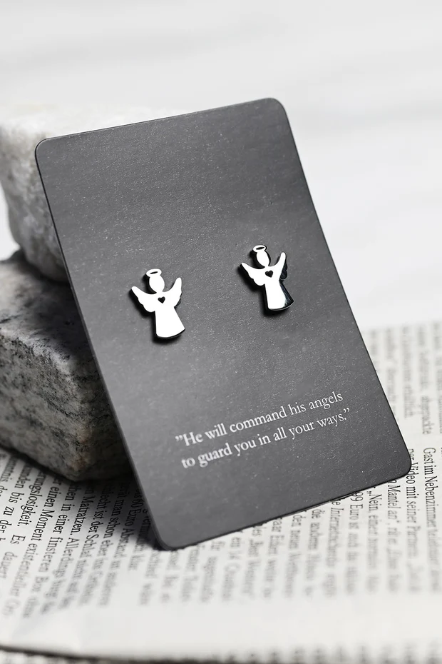Smycket levereras monterat på ett svart litet kort med ett bibelord som matchar smyckets budskap.