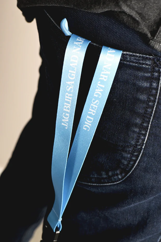 Bandet har både säkerhetsclip, snabbfäste och karbinhake där du lätt hänger fast nycklar eller passerkort. Insidan är i matchande färg och har en liten Me & My House Store-logo.